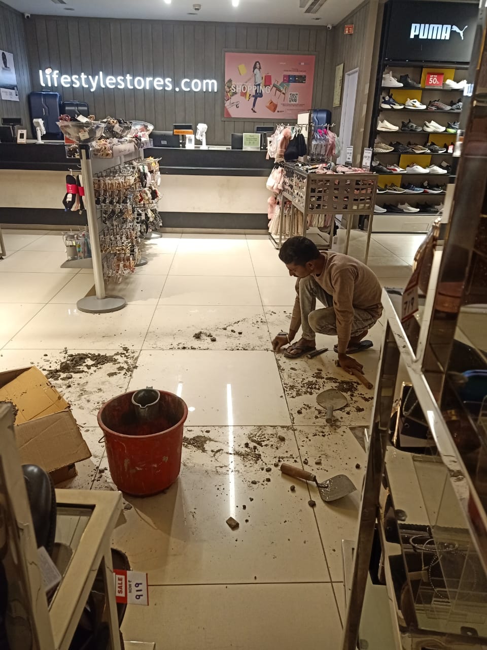 Lifestyle International Private Limited. Vega Mall Old Wall Gypsum Board Wall Dismantle Working New Work MDF Board to site Gypsum Board Wall Putty, wall primer, colour paint Complete Work
